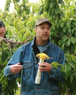 There is speculation with the state's large cherry crop this summer that cherries 11 row and smaller will be sold at a terrific discount. With our heavy set in the Sweethearts, we decided we'd thin them to get bigger size. This picture of Brent Huck comes from the Good Fruit Grower in an article about cherry thinning. Here Brent is explaining how workers use the "claw" to thin fruit. We bought several of these along with a few long bladed clippers. It felt counter intuitive to cut off the fruit, but we do it in apples so why not cherries! According to fieldstaff, only 5% of cherry growers thin their cherries. We are officially part of that 5% now. I'll let you know how that works out.
